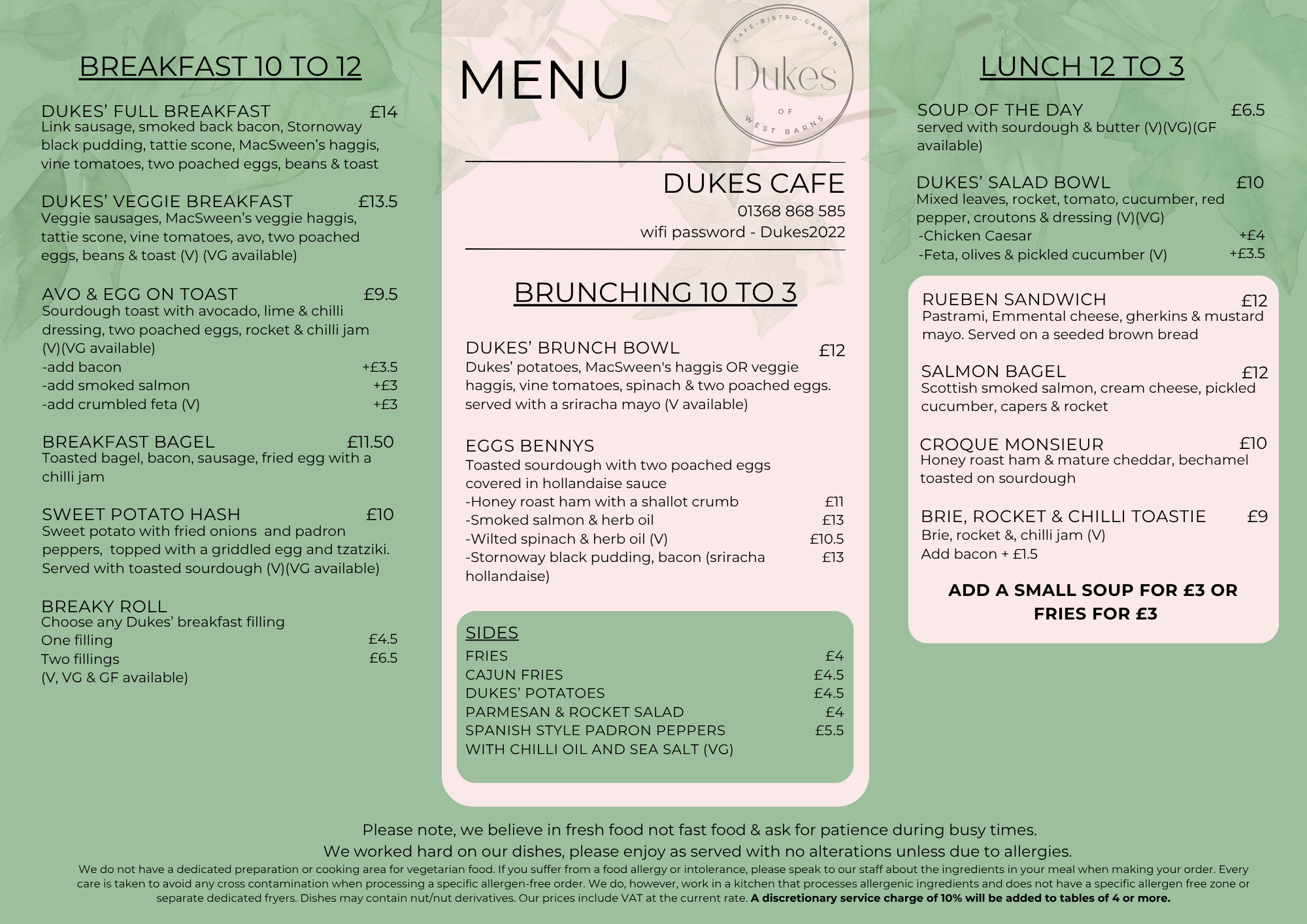 We no longer take bookings for coffee and cake only. For food, please book below or call 01368 868585.